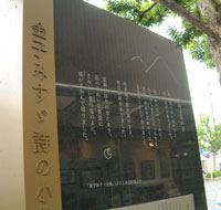 詩は、黒御影に掘る。解説文、写真はステンレスベースにエッチングで表す。詩集を開いた様子を表す背表紙にあたるところの、タイトル文字「金子みすゞ詩の小径」と柱もステンレスで。